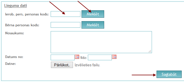 "Ierob. pers. personas kods" - vecāka personas kods (obligāts);