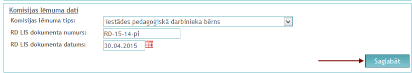 Lai ievadītu komisijas lēmumu, jānorāda dati laukos: