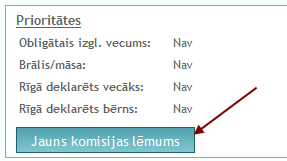 Lai pieteikumam pievienotu komisijas lēmumu, jānospiež poga "Jauns komisijas lēmums".