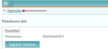 Lai atgrieztos Pieteikumu sarakstā, jānospiež hipersaite "Atgriezties" lapas augšējā kreisajā stūrī.