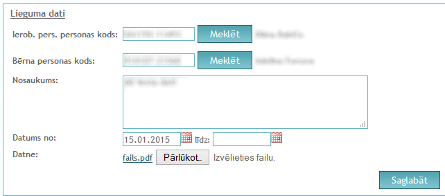 Ierobežoto personu vai bērnu var meklēt pēc sekojošiem laukiem:
