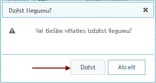 Nospiežot pogu "Dzēst", liegums tiks izdzēsts.