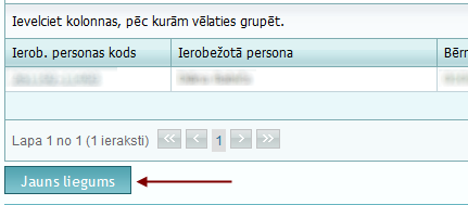 Lai ievadītu jaunu liegumu, jānospiež poga "Jauns liegums".