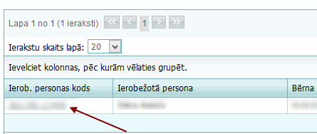Lai apskatītu lieguma datus, jānospiež sarakstā uz ierobežotās personas koda hipersaites.