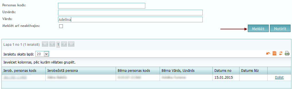 Kad meklēšanas parametri ir ievadīti, jānospiež poga "Meklēt".