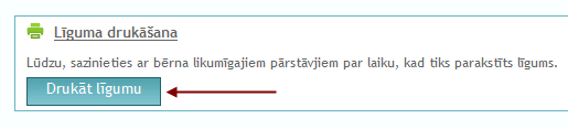 Lai izdrukātu līgumu, jānospiež poga "Drukāt līgumu".
