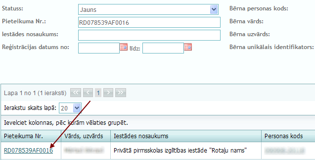 Lai atceltu pieteikuma noraidīšanas darbību, jānospiež poga "Atcelt".